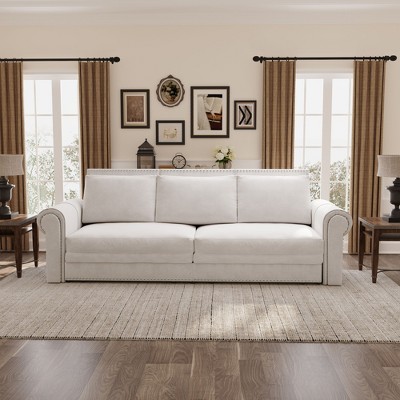 93.7"Luxuriously Comfortable 4-Seater Cloud Couch,Chenille Fabric Sofa with Elegant Rolled Arms & Pleated Skirt Design,26.4"Extra Deep Seat Mid Century Sofa for Apartment,Office,