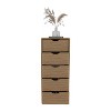 - Five spacious drawers offer ample storage for clothing, linens, or accessories in a compact unit.