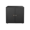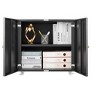 Organize your workspace in style with this Black Metal Double-Door Printer Cabinet. Made from durable steel, it features adjustable shelves that provide flexible storage for printers, files, and office supplies. The 360° lockable casters allow smooth movement and secure positioning, while the waterproof and wear-resistant finish ensures long-lasting durability. With its sleek modern design, this cabinet is perfect for offices, homes, or garages, adding both functionality and elegance to any space.