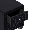 Bring a touch of elegance and functionality to your bedroom with the ORRD Black Velvet Nightstand. Wrapped in soft velvet upholstery with button-tufted detailing, this bedside table combines luxurious style with practical storage. Two spacious drawers with sparkling crystal handles provide an easy way to keep your nighttime essentials, books, or accessories neatly organized. Sturdy construction ensures long-lasting durability, while the sleek black finish makes it a versatile accent piece for modern, glamorous, or contemporary interiors. Perfect as a nightstand in the bedroom or as an accent end table in the living room.
