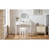 - Comfortable Makeup Stool with PU Leather Cushion – Includes a padded matching stool with soft sponge and durable PU leather seat, providing lasting comfort during extended makeup or skincare sessions.