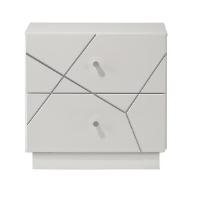 ORRD Esther White & Silver High Gloss Nightstand, Assembled