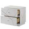 Esther White & Silver High Gloss Nightstand—pre-assembled for instant use! Sleek, reflective finish in white and silver adds modern elegance to your bedroom, perfect for bedside storage and display.