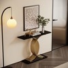 Elevate your entryway or living room with this gold and black luxury console table. Featuring artistically intertwined metal legs and a durable, scratch-resistant top, its slim design adds a high-end minimalist statement to hallways, behind sofas, or any compact space. Form meets function with European flair.