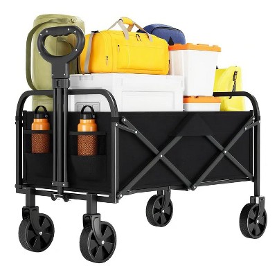 Move heavy items effortlessly with this 660lb capacity flatbed cart! Features 360° swivel wheels, foldable design, and anti-slip platform. Perfect for warehouse, moving, and storage use. Rubber-grip handle ensures comfortable operation. Quick folding for compact storage.