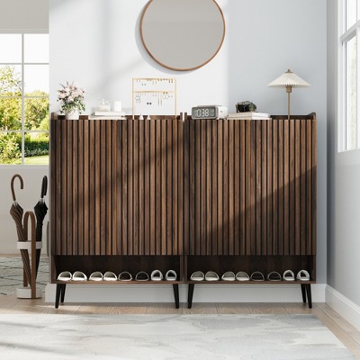 ORRD Modern Japanese Rattan Storage Cabinet, Minimalist Shoe Cabinet & Bedside Table for Small Spaces, Hallway & Living Room Organizer