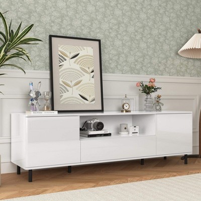 ORRD Modern TV Stand with Wave-Design Doors, Open Shelf & Adjustable Shelf - 1 of 4