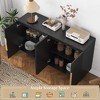- 【Large Storage Space】: The buffet table is equipped with a wooden corrugated board decorative door, with a spacious top and four large spaces inside, which is perfect for placing your collections or decorations or necessities, keeping your room neat and organized