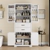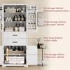 - Ample and Flexible Storage——Featuring two spacious drawers with smooth - gliding rails, five interior shelves, and six small storage shelves behind the upper doors, this cabinet offers extensive storage capacity. What's more, the first shelf at the bottom of the cabinet can be adjusted to three different heights, allowing you to customize the storage space according to your specific requirements.