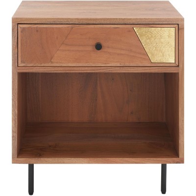 Add modern function to your space with this sleek two-drawer nightstand! Features angled design, smooth-gliding drawers, and vintage gold hardware. Compact size fits bedside or as a living room side table. Quick 15-minute assembly.