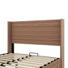 Maximize your space with this queen storage bed! The easy-lift mechanism reveals ample under-bed storage for seasonal items. Featuring a stylish slatted headboard with open shelves, it's crafted from durable MDF with a rustic brown finish. No box spring needed; supports up to 1000 lbs. Perfect for small apartments and bedrooms. Easy assembly.