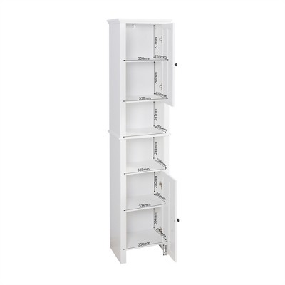 ORRD Tall Bathroom Storage Cabinet with 2 Doors & 6 Adjustable Shelves, Freestanding Narrow Wooden Organizer for Living Room, Kitchen, Laundry