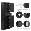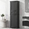 This tall bathroom storage cabinet features a sleek black painted MDF finish, combining modern style with durability. It includes a spacious drawer and adjustable shelves, offering versatile storage for toiletries and essentials. The freestanding design makes it easy to place anywhere in your bathroom, keeping your space organized and stylish.