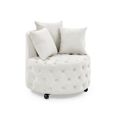 ORRD Tufted Club Chair, Mid Century Modern Accent Armchair with Studded Details, Linen Fabric, for Living Room, Bedroom, Beige
