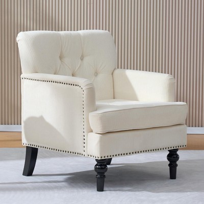 ORRD Tufted Club Chair, Mid Century Modern Accent Armchair with Studded Details, Linen Fabric, for Living Room, Bedroom, Beige