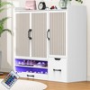 ORRD White Multi-Functional Shoe Cabinet with Adjustable Shelves, Stool & Retractable Toe-Kick Drawer