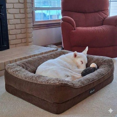 Orthopedic Dog Bed, Ultra Plush Memory Foam Bolster Cuddler Pet Bed for Large Dogs Anxiety Relief, Washable Removable Cover (Large, Brown)