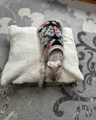 This Orthopedic Pillow Bed from Boots & Barkley™ brings comfort to your pet friend's day. Draped in a soft fabric with soft filling, this ortho pillow bed for dogs features a faux-shearling surface that helps provide them comfort and support during sleeptime, nap time or while lounging. Best of all, it's designed with a zip closure that allows you to remove the cover and toss it in the washing machine for a quick refresh whenever needed. Featuring a colorblock design with a green base and a beige faux-shearling sleep base, it's sure to add cute style to your space.