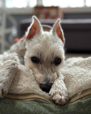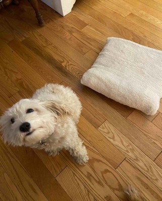 [This review was collected as part of a promotion.] The picture on the site for this bed made it look like it was a fluffy pillow. When I opened the package it was rolled very tightly. We thought once we opened it it would expand out, but the material inside was the pieces of foam in different sections. It was weird because it wasn’t just one big piece of foam, the whole inside was just all lumpy pieces of foam, like someone chopped it all up. The outer material on the top was super soft, so my dog loved that part. I received an incentive to write this review.