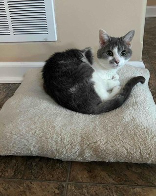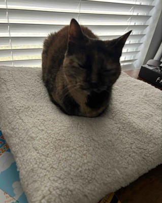 [This review was collected as part of a promotion.] I thought the pillow was kind of lumpy. It did take a couple of days for the kitties to warm up to it. The white kitty is 7 lbs and the brown kitty is 10 lbs. They have been eyeing each other until the pillow has been vacated. My kitties aren’t ones to snuggle or share. So for them, if it’s free, it’s mine. The zipper is easy to operate if it needs cleaned. I like the small size to move around and not overpower the kitties. I received an incentive to write this review.