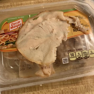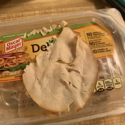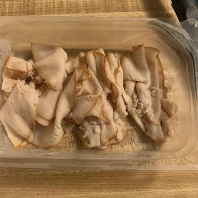 Once open the smell is weird…like a deli meat fart. Not like rotten or spoiled, but like a mixture of preservatives, additives of unknown & unmentioned ingredients, & the build up pressure while sealed in for freshness. Tasted good, considering the changes it encountered from the moment the turkey died to its final resting place on my sliced bread. Great price that week (2 for $7). Easy to eat all within a couple of hours if you like meat as a snack with chips or as triple stacked sandwiches.