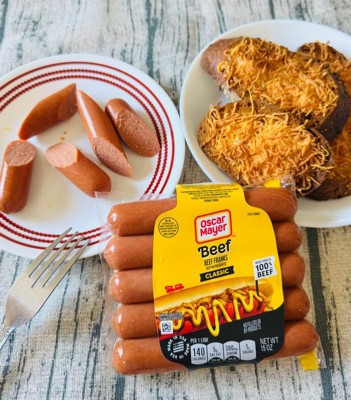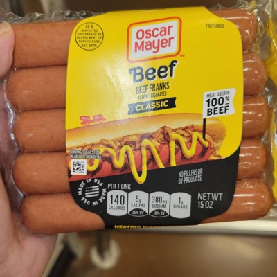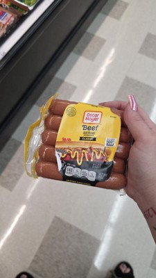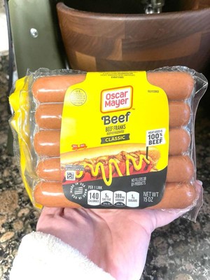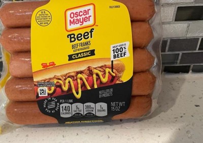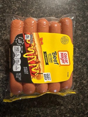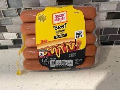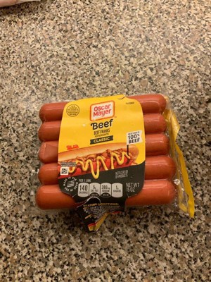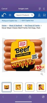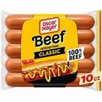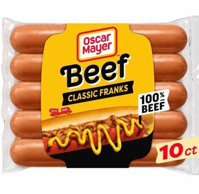 - One 10 ct pack of Oscar Mayer Classic Beef Franks Hot Dogs