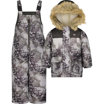 Stay warm and stylish with this OshKosh B'Gosh Girls Heavyweight Ski Jacket and Snowbib Snowsuit Set. Made of 100% polyester, this winter snowsuit ensures durability and insulation against the cold winter days. The elastic band on the sleeves and on the snow bibs provides a secure fit, preventing chilly drafts. Adorable floral print, this snowsuit adds a playful touch to your child's winter wardrobe. The heavyweight puffer design offers superior warmth, making it perfect for colder snowy days. Completed with a faux fur trim on hood and fleece lining for added protection, the snow bibs crafted with adjustable shoulder straps which makes it easy to adjust to your little ones structure and body. Keep your little girls cozy and warm in this stylish snowsuit set during outdoor adventures or playtime in the snow with this functional winter essentials.