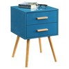 Add a touch of Scandinavian charm to your home with the Oslo 2 Drawer End Table by Breighton Home. Inspired by mid-century modern design, this sophisticated piece features a spacious tabletop and two roomy pull-out drawers, perfect for storing everyday essentials. Crafted from sturdy manufactured wood with solid wood handles and supported by solid wood tapered legs, this versatile side table is built to last and finished in a smooth, high-gloss piano finish for a sleek, contemporary look. Whether styled as an end table in the living room or a bedside table in the bedroom, its clean lines and unique silhouette bring modern elegance to any space. Complete the look by pairing it with other coordinating pieces from the Oslo Collection, each sold separately.