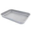 Bake up all your favorite baked goods with the Oster 5 piece roasting and baking set. Made of strong and durable carbon steel that is built to last. Featuring a beautiful greystone texture finish to give it that old fashioned look to your kitchen. This amazing set comes complete with one 15.5 inch roasting pan, one 15 inch cookie sheet, one 13.25 inch cookie sheet, one 13 inch cooling rack, and one 12 cup muffin pan. Features a non stick surface that is perfect for low-fat baking and easy clean up. All pieces can be easily stacked up for easy storage.