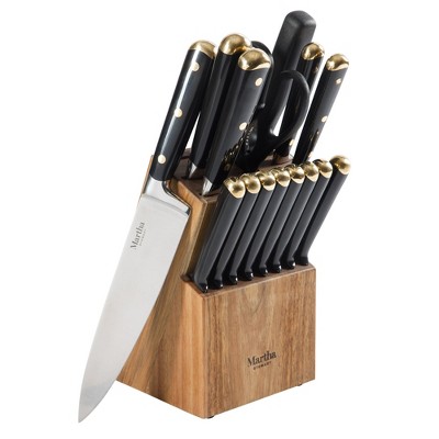 Oster Ginley 18 Piece Stainless Steel Cutlery Set in Black with Pinewood Block