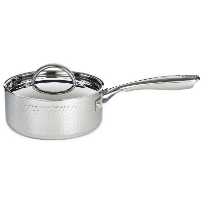 Introducing the Oster Modessa 2.5 Quart Nonstick Triply Stainless Steel Saucepan and Lid with Honeycomb Design in Silver, a sophisticated addition to any kitchen arsenal. Crafted with precision and style, this saucepan boasts a triply stainless steel construction with an aluminum core for even heat distribution, ensuring consistent cooking results every time. The innovative honeycomb design on the interior surface not only enhances food release but also provides superior scratch resistance for long-lasting performance. Complete with a snug-fitting lid, this saucepan seals in moisture and flavor while the riveted handles offer a secure grip for safe and convenient handling. Whether you're simmering sauces, boiling pasta, or reheating leftovers, the Oster Modessa Saucepan delivers exceptional quality and versatility for all your culinary adventures.