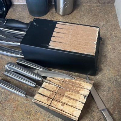 Oster Wellisford Stainless Steel Kitchen Cutlery Set with Black Wood Block Holder and Knife Sharpener for Home Chef Cooking Cutting, 14 Piece (Silver)