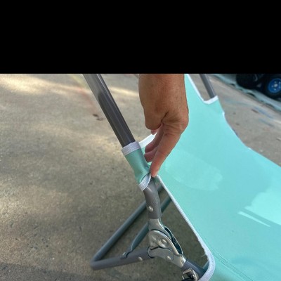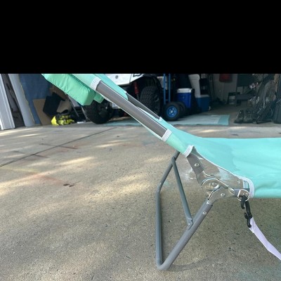[This review was collected as part of a promotion.] This foldable lounge chair is convenient for the park, beach or yard. It has a handle attached to carry it easily! The material is very lightweight and easy to use. The weight limit states 250 pounds but I don’t think it is durable enough for that weight limit judging by the aluminum it is made out of. There is face hole and arm holes so you can lay on your stomach, plus a comfy pillow!