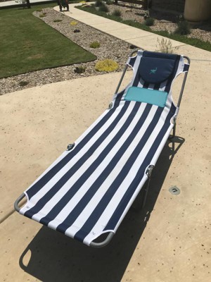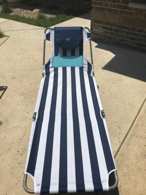 Ostrich Ladies Comfort Lounger with Chest Support, Portable Reclining Outdoor Patio Beach Lawn Camping Pool Tanning Chair, Blue Stripe