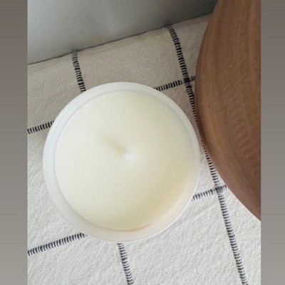 [This review was collected as part of a promotion.] This 8 ounce scented candle is a great neutral smell to have in your home. This is a single wick candle with a wig, right smack dab in the middle. The wax is a creamy off-white, and the scent is supposed to be similar to a arabica, coffee, toasted Almond, and Oakwood. This is a calming and reassuring scent that is not too bold.