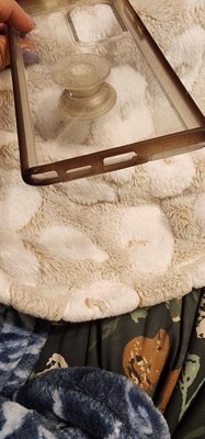 A: The case features a marble swirl print under a clear shell for a stylish look.