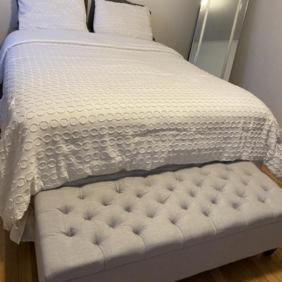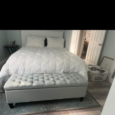 BUTTON TUFTED DIAMOND STITCH: The button-tufted stitching in the lid offers an extra touch of sophistication that enhances its contemporary design. The diamond stitch pattern adds a bit of texture without sacrificing any comfort.