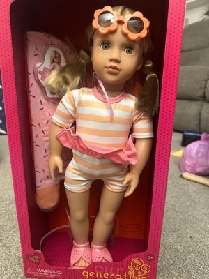 Our Generation 18" Doll with Swimsuit and Pink Pool Float Accessory