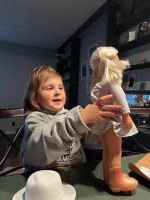 [This review was collected as part of a promotion.] We’ve been able to play with this doll all weekend. the daughter promptly introduced this doll to all her other dolls. My daughter (5yr) is really into pretending to be a teacher. So this doll is now one of her students. My daughter’s favorite feature of the doll is the eyes closing - that makes “nap time” very realistic. She loves that she came with a name. And I like how I can buy more clothes and accessories for the doll when my daughter needs a reward. Included in the package was the outfit, boots, hat, and instructions for the dolls hair care. A great toy that is also affordable.