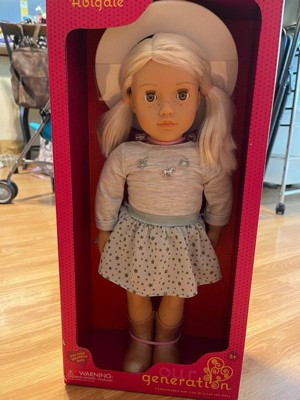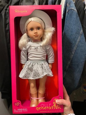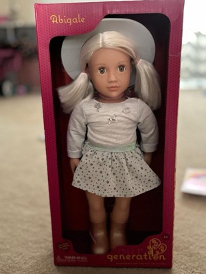[This review was collected as part of a promotion.] Abigale is such a beautiful Our generation doll. She is perfect l. My daughter loves her. Her hair is super soft. She has the cutest freckles, and outfit. The doll and her outfit are great quality.