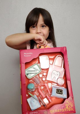 [This review was collected as part of a promotion.] Just like anything from our generation this is adorable. I wanted to get this set for my daughter since she had an upcoming dental appointment and this was so great for her to play with and use the pieces on her doll before going. It sparked the conversation of oh what's this used for, what's this etc? Overall the set was adorable and realistic like always and was a cute addition to the set.