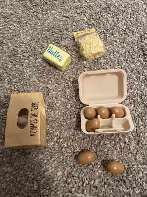 [This review was collected as part of a promotion.] So this shopping cart and food is so wonderful. The cart works great and the front wheels turn just like a real shopping cart. The food is also so realistic. The eggs come out of the carton, the bag of potatoes and mushrooms look real, and the butter and pasta are so detailed they really look like miniature versions of what I have in my kitchen. This play set has been loved by my 7 year old daughter and we love playing grocery store with it.