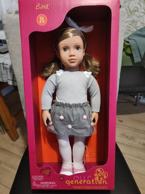 Our Generation Bina with Pom Pom Skirt 18" Fashion Doll: Blonde Hair, Green Eyes, Outfit & Accessories Set