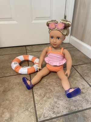 - 18-inch Doll Bathing Suit Outfit: Suit up for sunshine and water-ful times with the Our Generation Floaty Fun outfit!