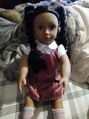 Be aware: Our Generation has lightened the skin tone of the doll on its packaging. Fredericka is a beautiful dark-skin-toned doll, but the box and web picture show it with much lighter skin.