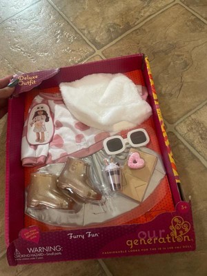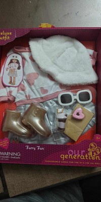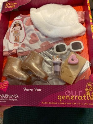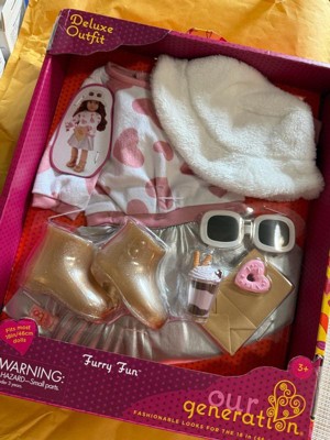 Our Generation Furry Fun Heart-Print Sweater & Skirt Outfit with Accessories for 18" Dolls