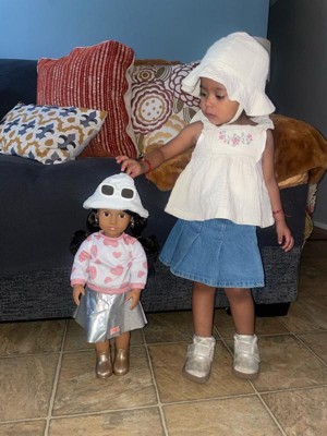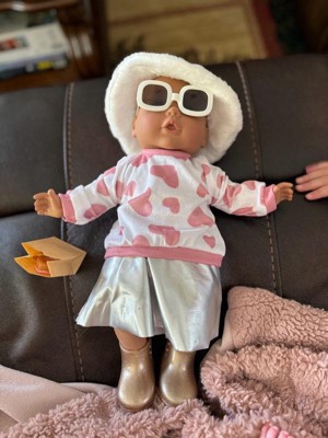 [This review was collected as part of a promotion.] This outfit set is super cute! The heart sweater is soft and cozy, and the white furry hat makes it even more adorable. I love the little details like the pink sunglasses, gold boots, milkshake, and tiny letter. Everything feels well made. The colors are pretty, and the pieces fit my niece’s doll nicely. It’s great for pretend play. The doll look stylish and cozy.