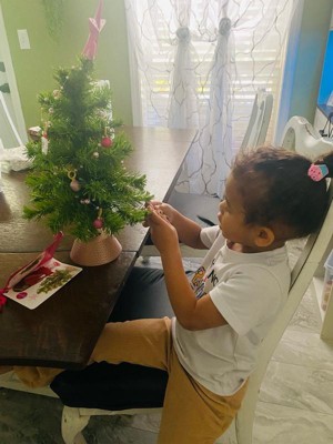 [This review was collected as part of a promotion.] My three years old daughter enjoyed decorating her mini Christmas tree 🌲💚 The size of the ornaments are just perfect for her little hands, very cute Christmas tree with base included and has different kinds of ornaments: 6 ball ornaments, gingerbread, candy cane, Santa Claus, snowman, pearl garland and star topper. Everything is nice and pretty.