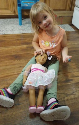 [This review was collected as part of a promotion.] My 4 year old recently discovered this “size” doll and she was THRILLED to get a brand new one, with “beautiful” dress and “fancy, party” shoes. She was easier to get out of the box than most toys these days and was an immediate hit.