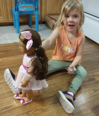 [This review was collected as part of a promotion.] This is such a cute doll! My daughter absolutely loves her and plays with her constantly. Her hair is lovely and the dress is well-made. Her shoes are too cute and my daughter loves taking them off and putting them on. Overall, she's a very lovely doll and perfect for any little girl who loves pink. I can't wait to pick up some accessories for my daughter to allow for more complex play.